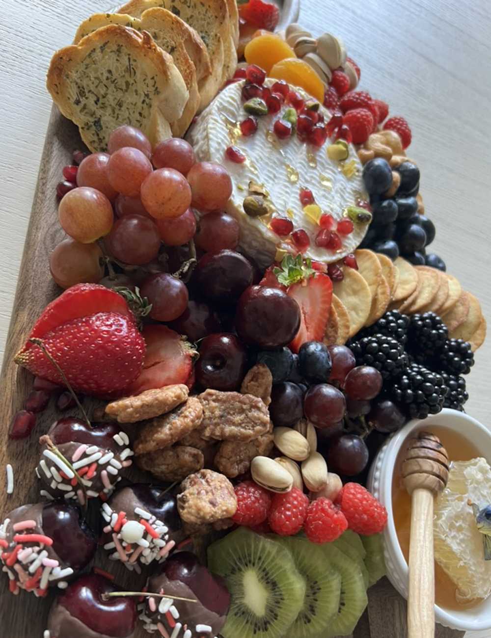 All pictures are examples only and are subject to change based on seasonality. Our boards come ready to dig in. We recommend enjoying your order as soon as possible. Items are perishable. If you are unable to nosh immediately, please store your board in the fridge while covered to preserve freshness. Boards should not be left out at room temperature for more than 4 hours. After this 4 hour unrefrigerated period, please discard. Certain items could pose a choking hazard. We do not advise storing an uneaten charcuterie board for more than 24 hours in order to preserve freshness.